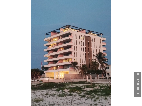 Estrena departamento en primera fila de la playa de Sisal con vista a la laguna y el mar en edificio Rosa Palmar, a pocas calles del muelle.